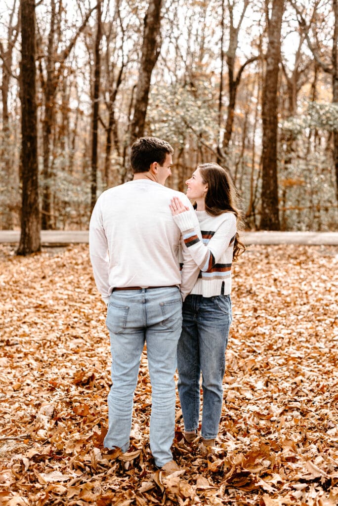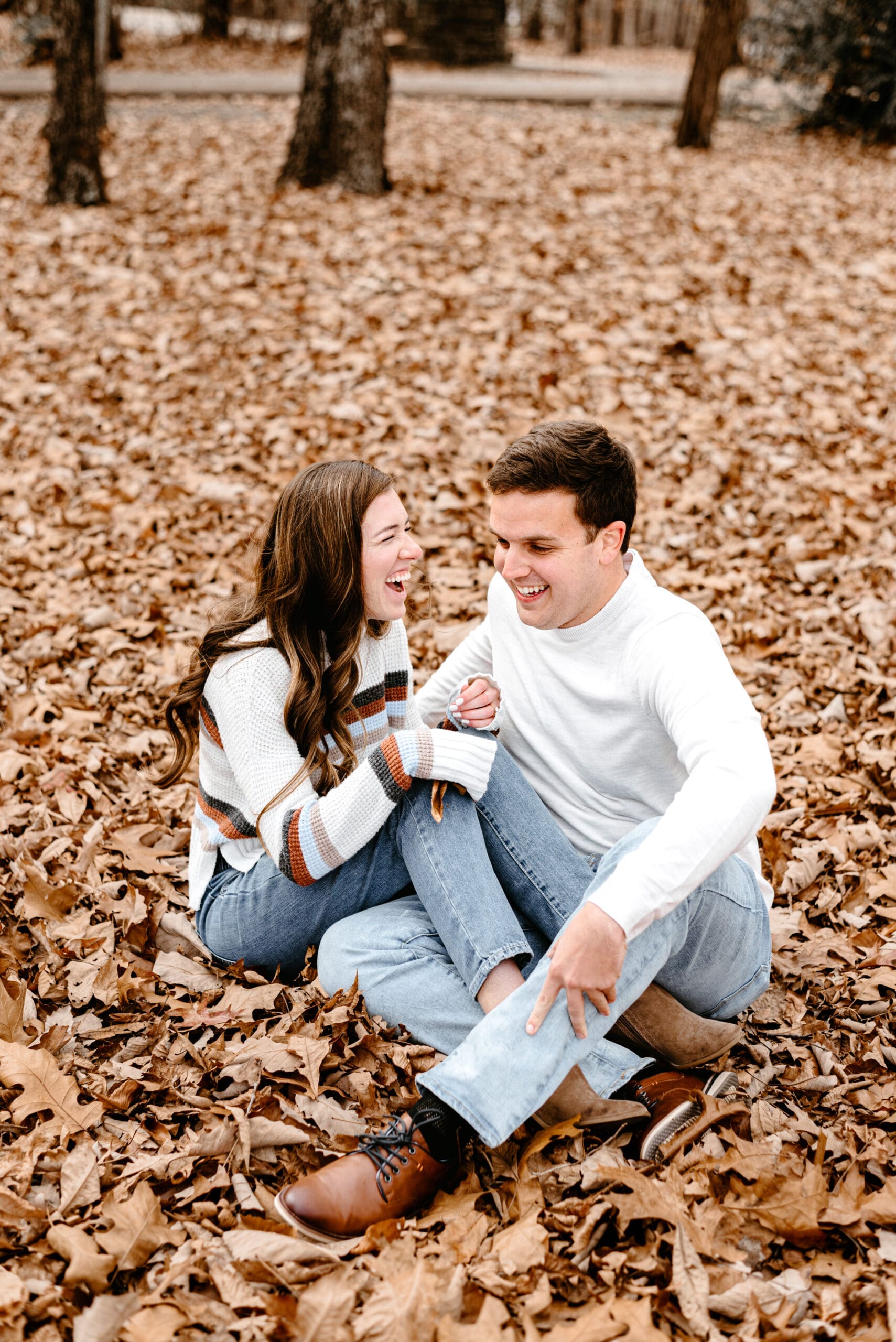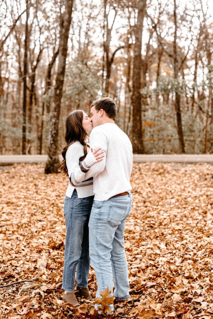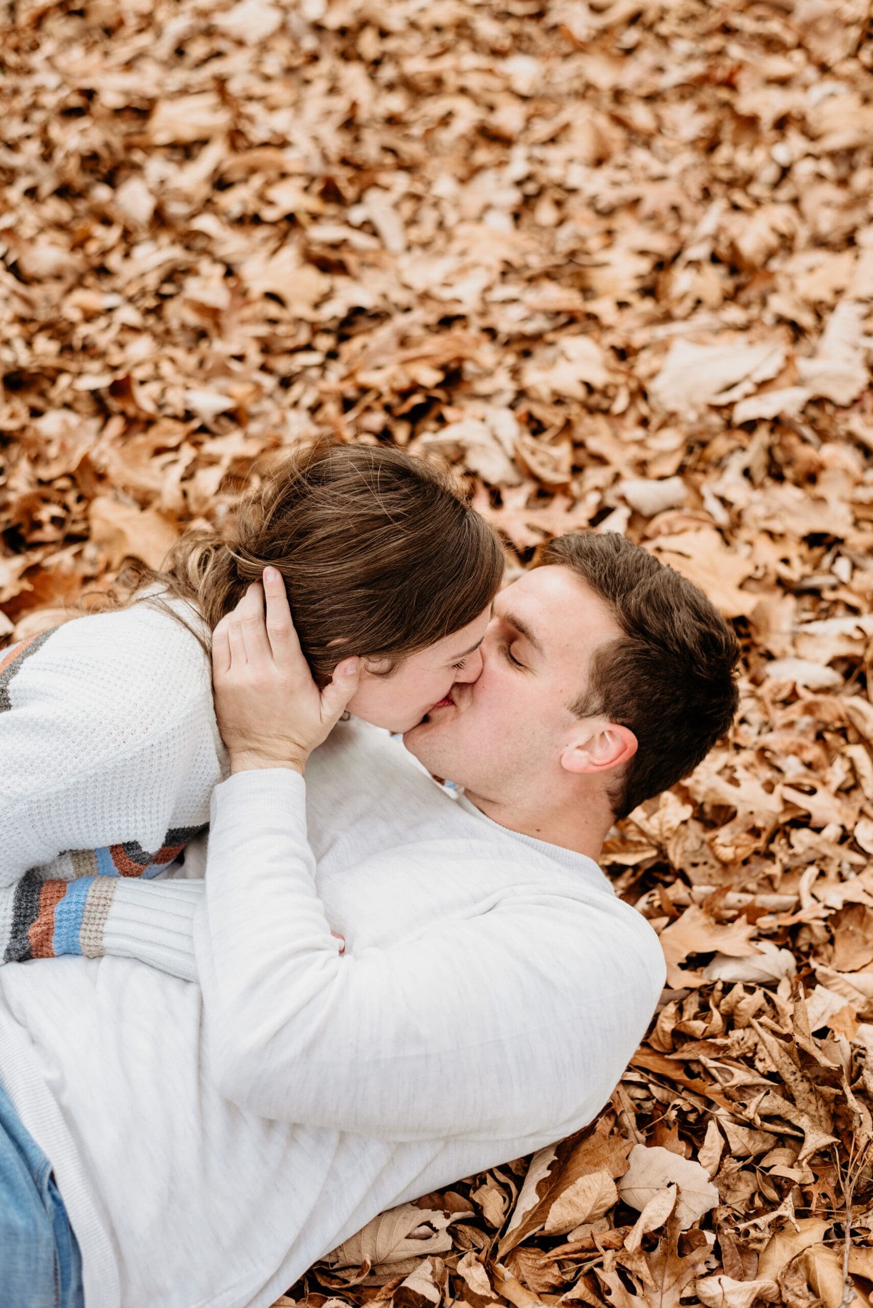 Even though it was chilly the sun came out beautifully between the fall colors and the trees and we were able to get some pretty amazing shots! Kylie and Riley were so down with doing some shots on the ground with the leaves and as you can see it came out so romantic! I cannot wait to capture their wedding day and continue planning with them!