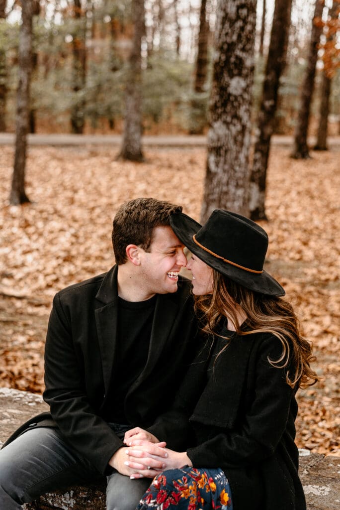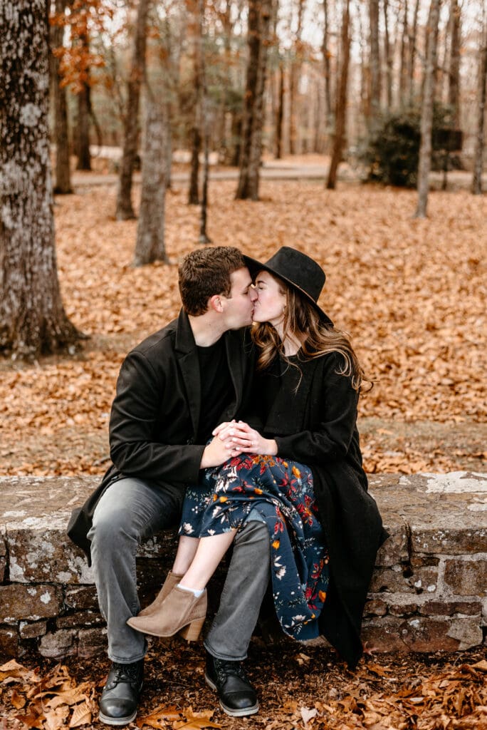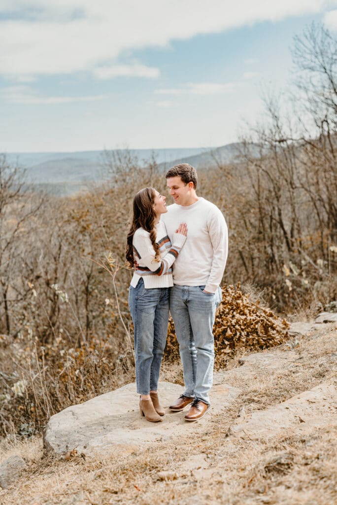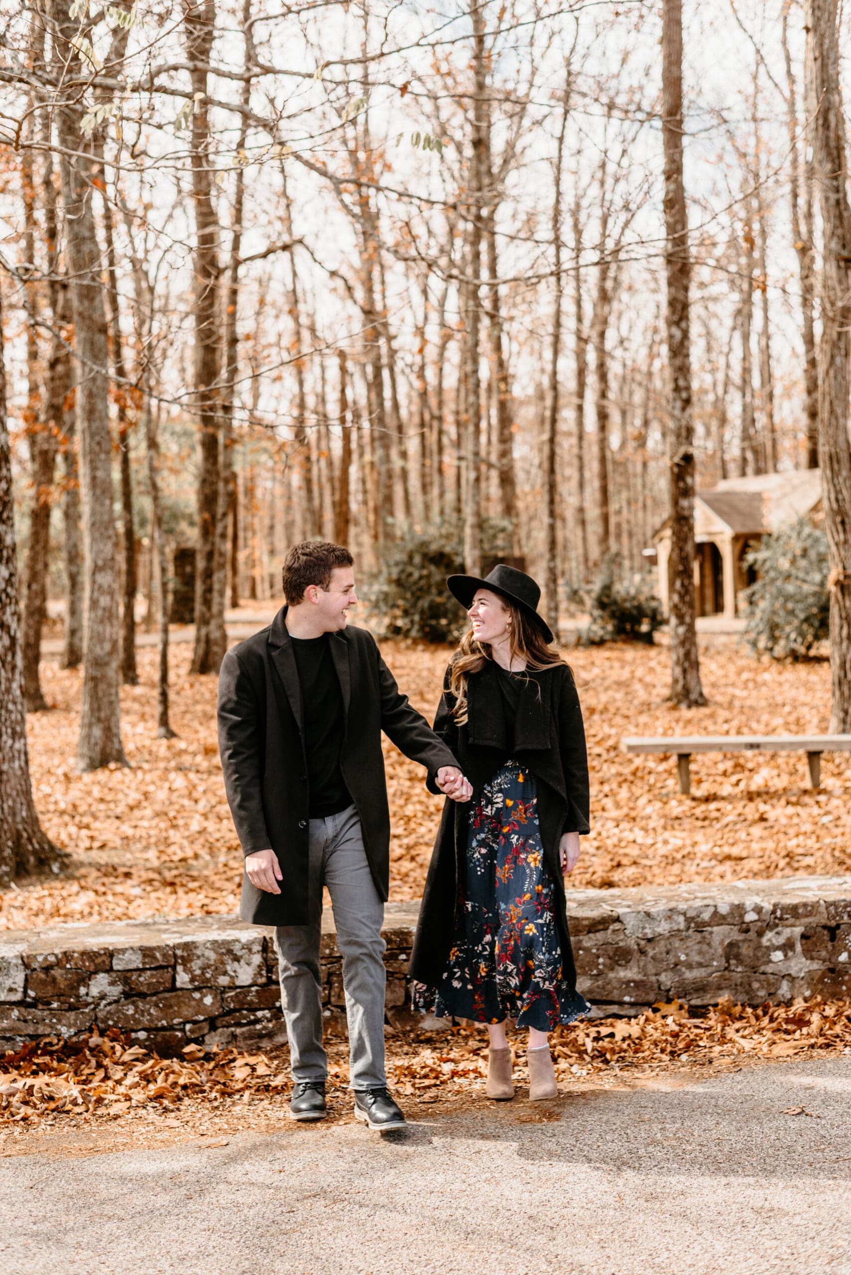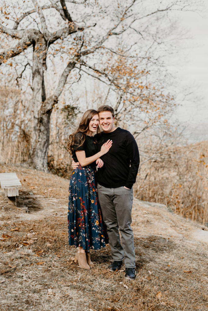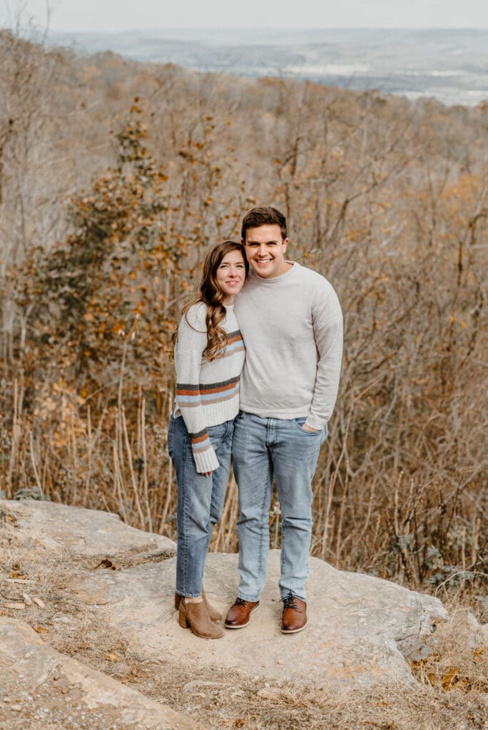 BUT since they were coming from Chicago and traveling to Florida so we were able to plan their engagement session so they could stop by Huntsville on their way! We decided Monte Sano Mountain with only had 30 minutes to take the photos, but it was such an easy session because they were so comfortable in front of the camera and all smiles! Despite it being cold we were able to plan it perfectly! You can even see the black coat that Kylie is wearing that is actually mine and I ended up letting her take it because it just looked so good on her!