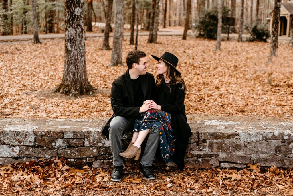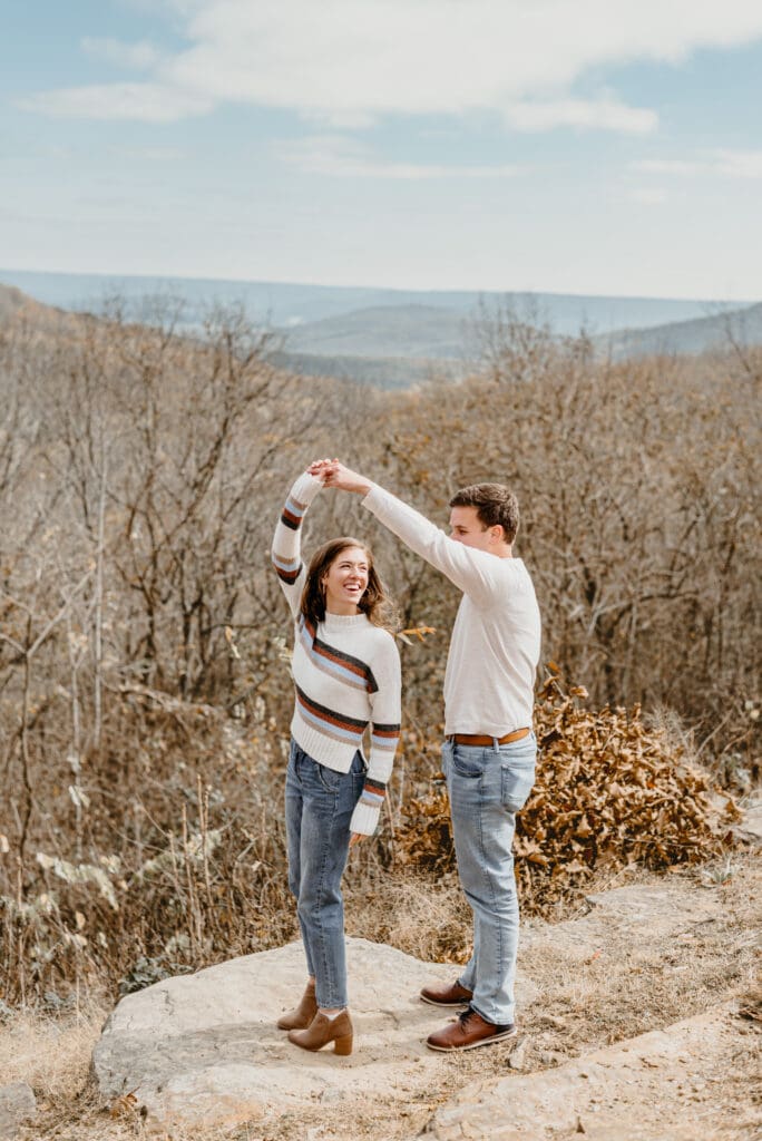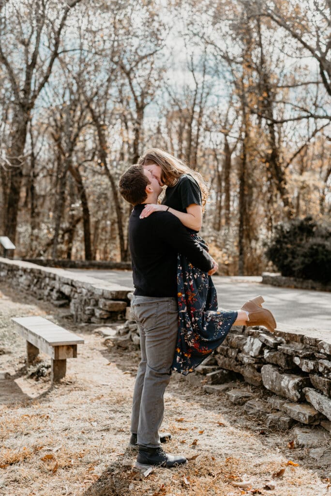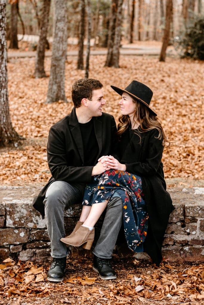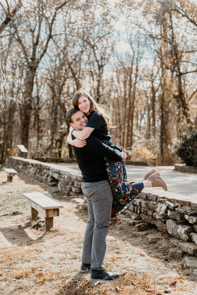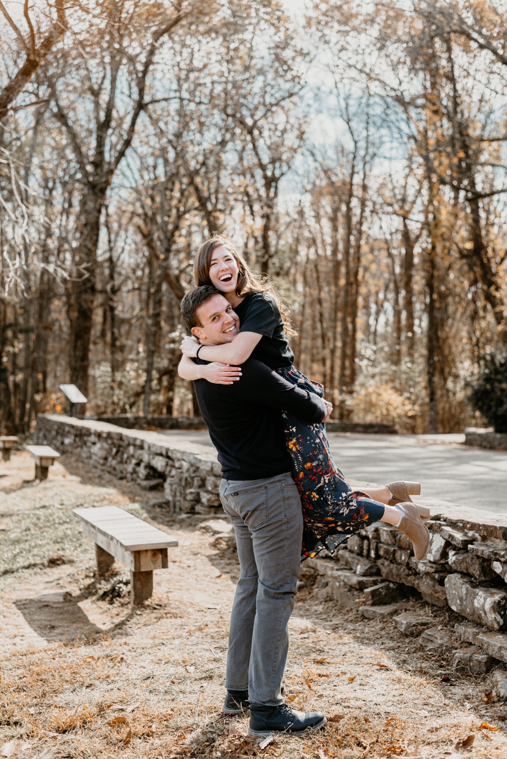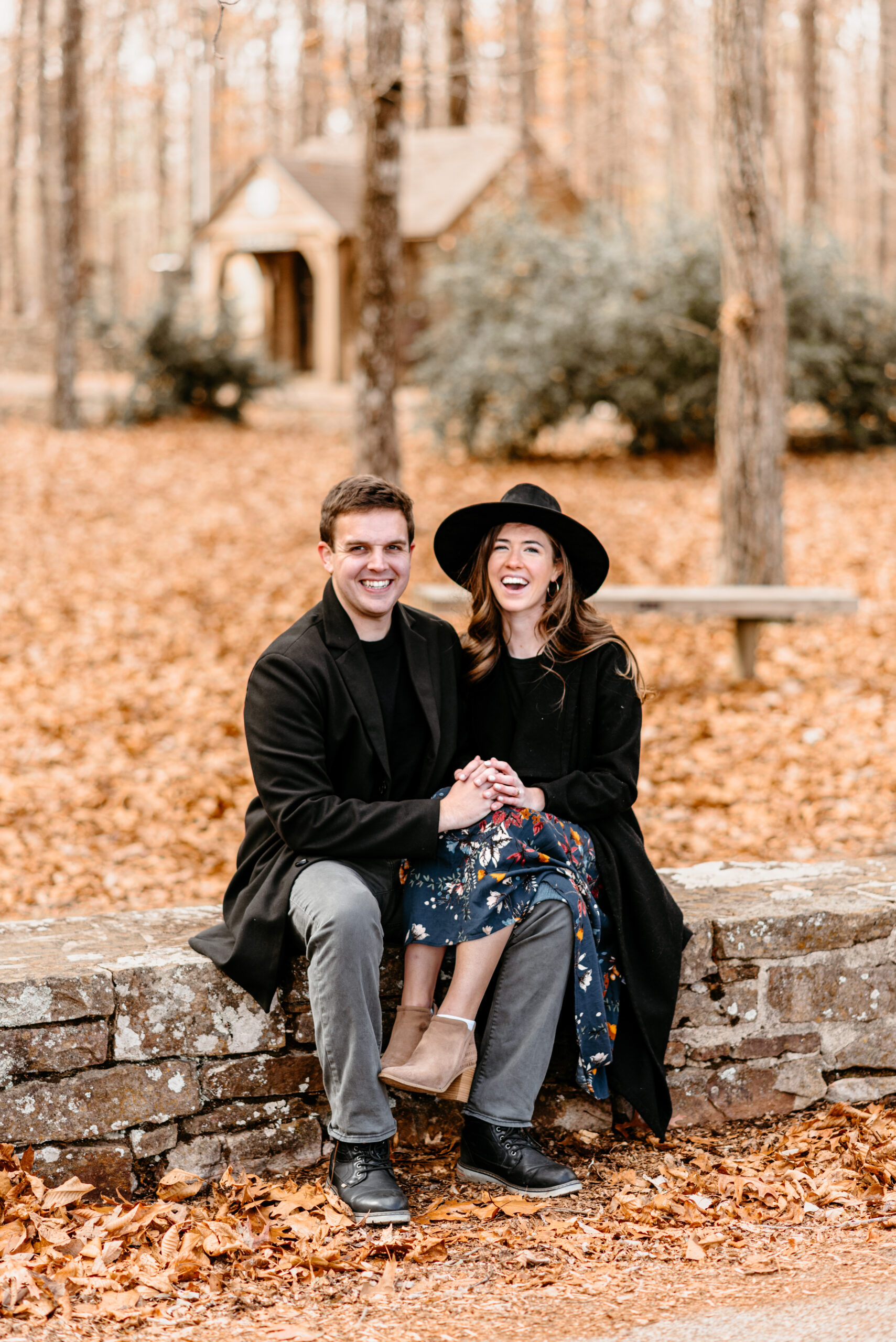 BUT since they were coming from Chicago and traveling to Florida so we were able to plan their engagement session so they could stop by Huntsville on their way! We decided Monte Sano Mountain with only had 30 minutes to take the photos, but it was such an easy session because they were so comfortable in front of the camera and all smiles! Despite it being cold we were able to plan it perfectly! You can even see the black coat that Kylie is wearing that is actually mine and I ended up letting her take it because it just looked so good on her!